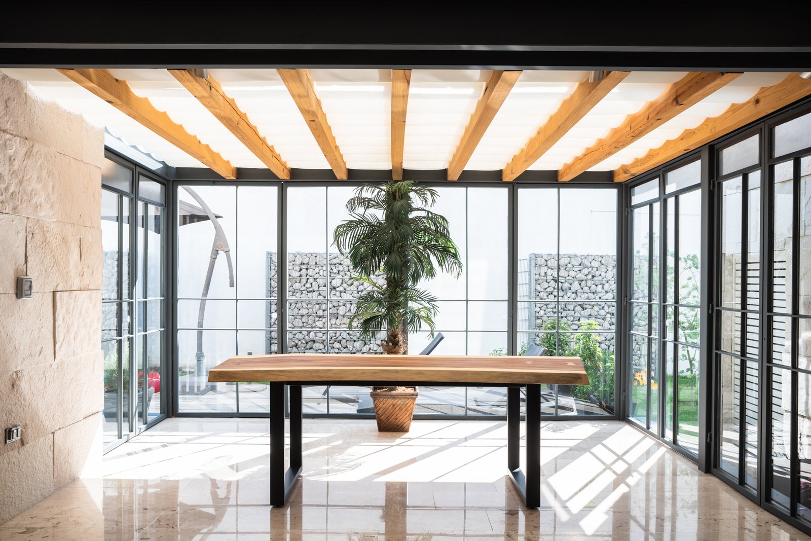Los clientes solicitaron una casa de ‘estilo Santorini’. En el taller consideramos que el estilo es una expresión de la geografía y la atmósfera del lugar, por lo que proyectamos esta vivienda bajo la clave del ‘regionalismo crítico’.