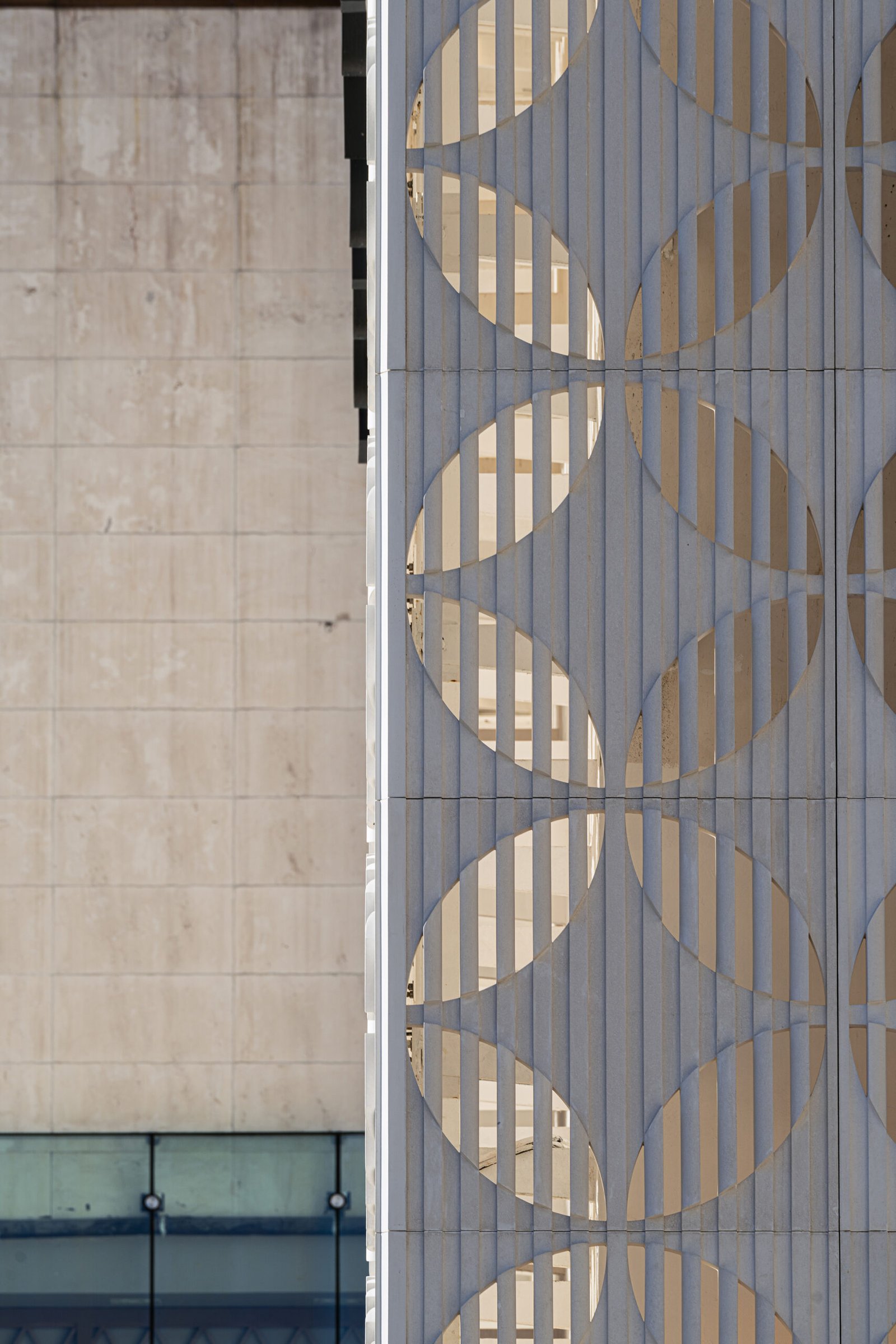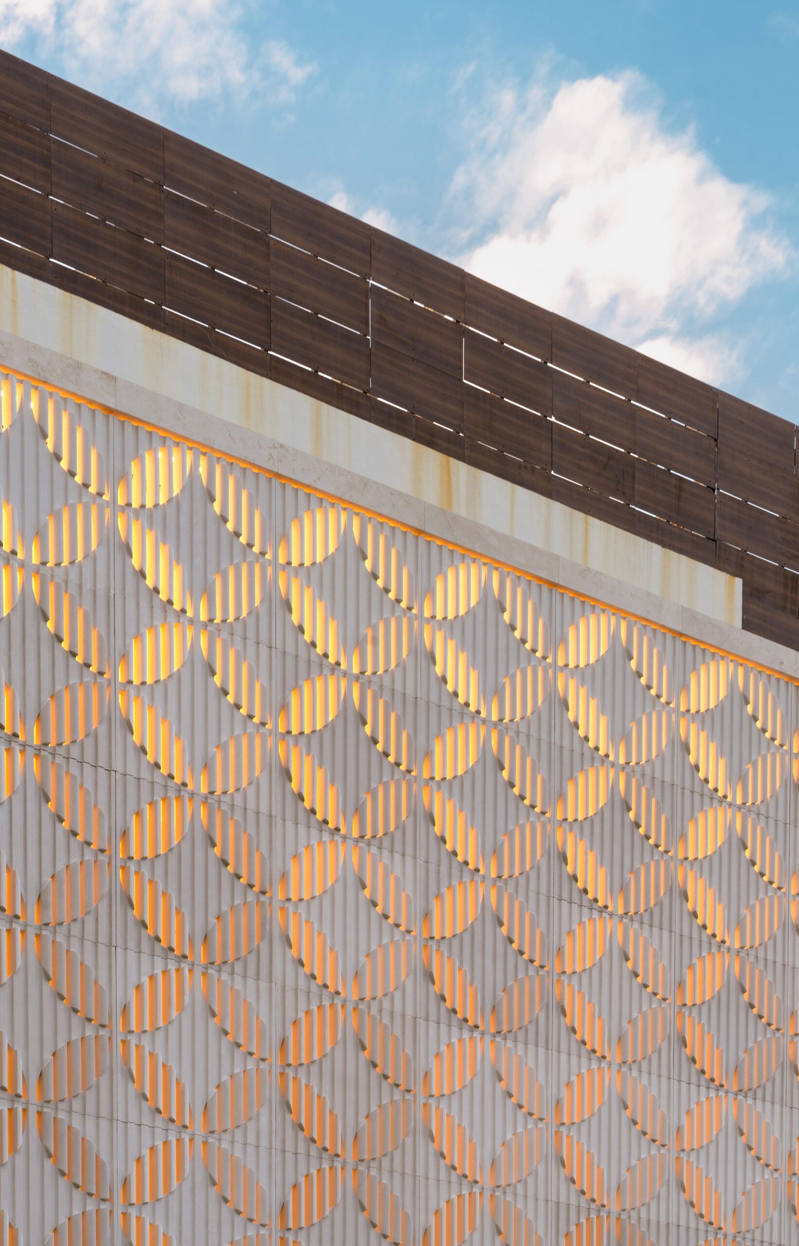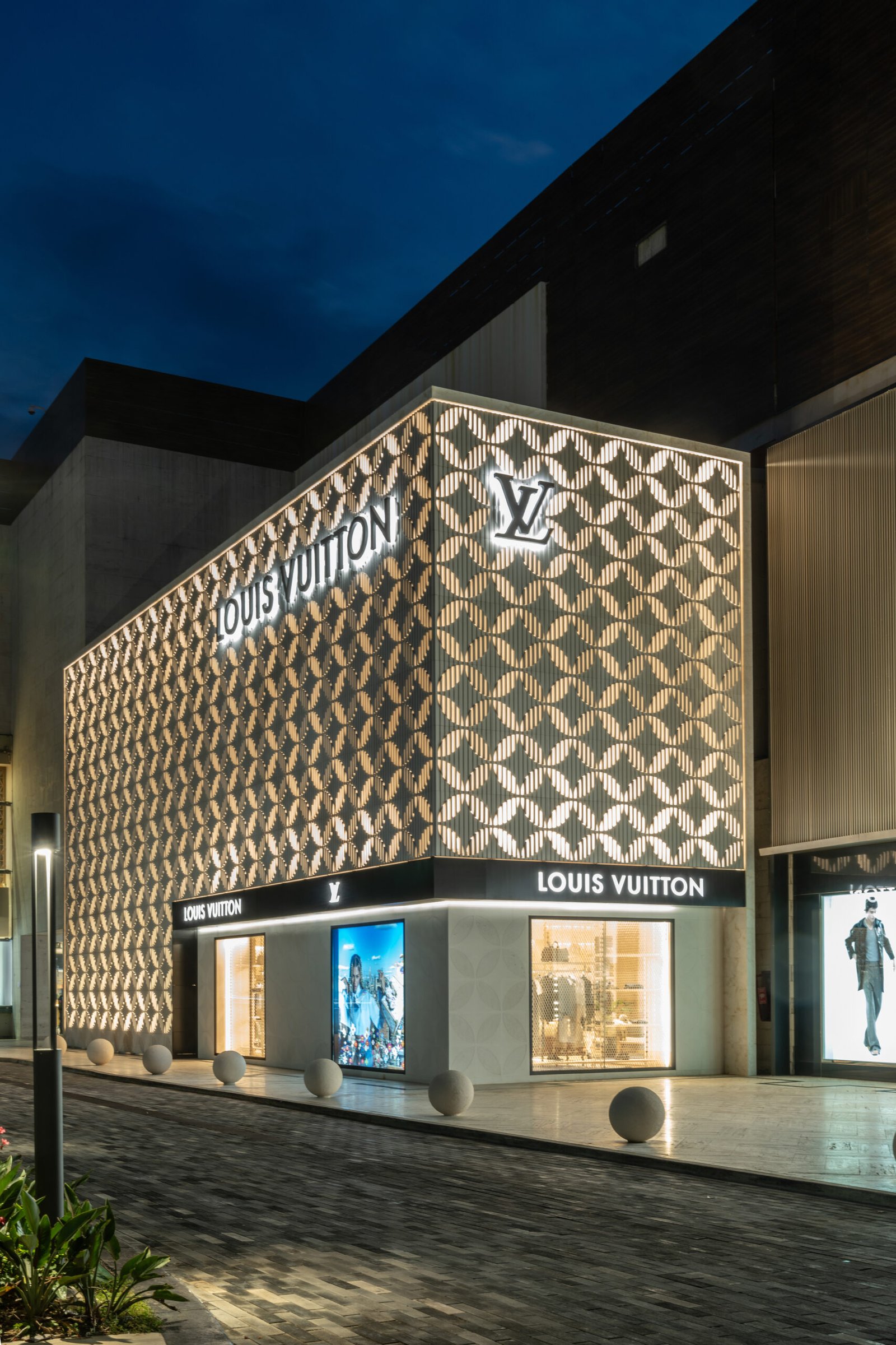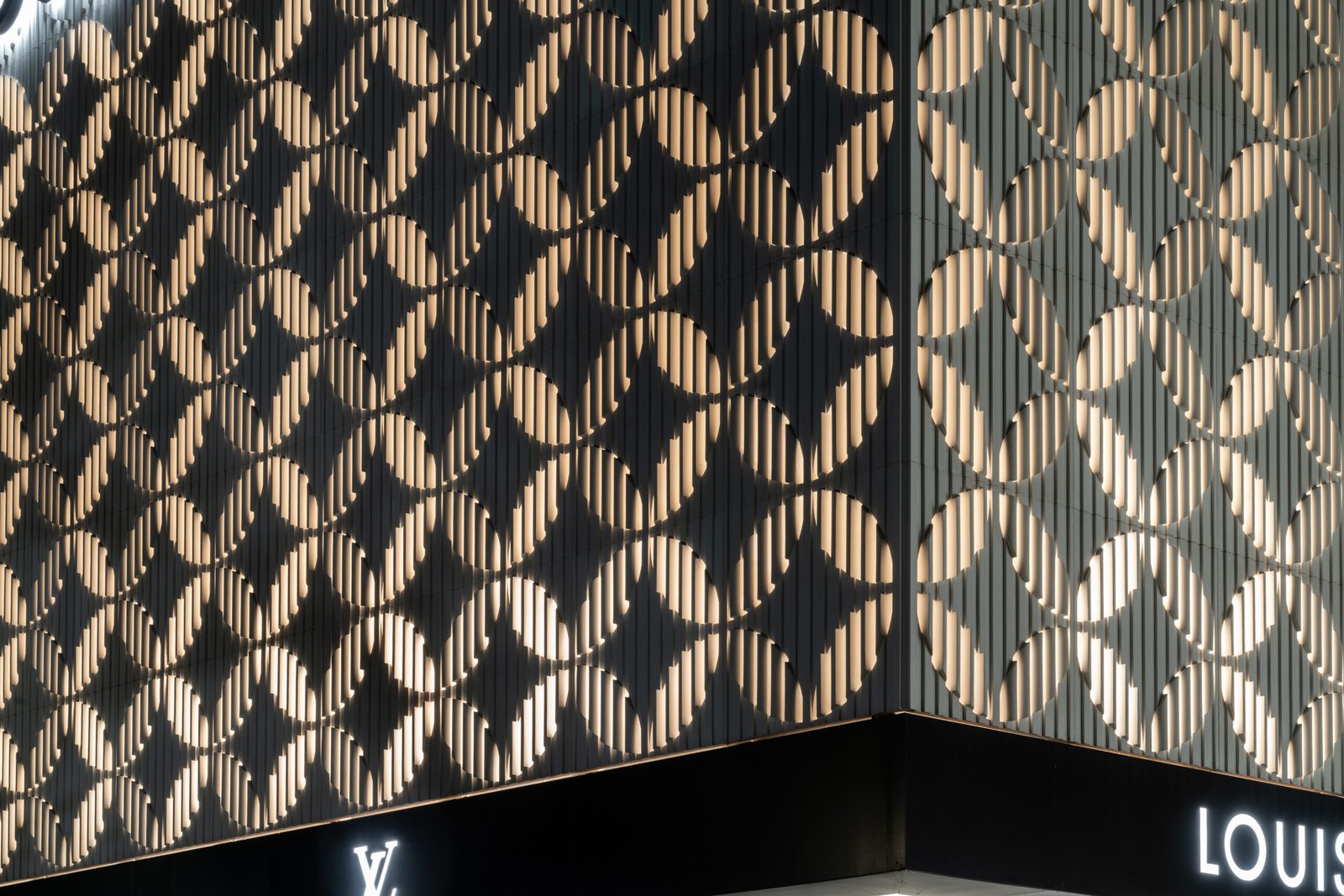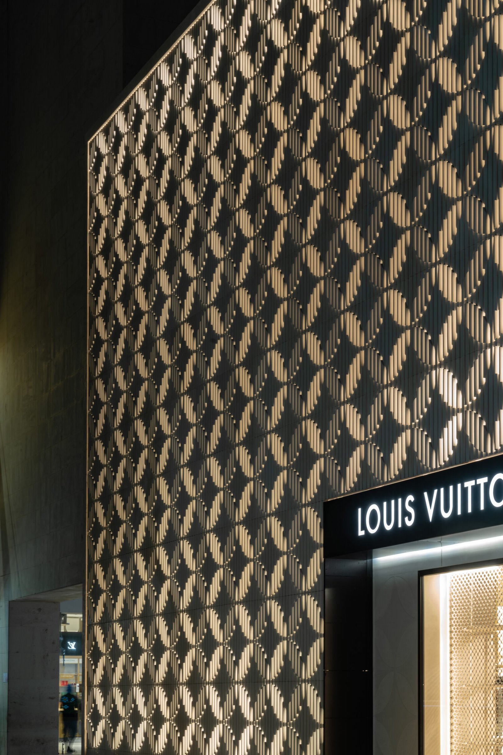 A doce años de su primera colaboración con Louis Vuitton en Cancún, Materia presenta una nueva intervención que reinterpreta la fachada de la boutique como una superficie viva y sensorial. Este proyecto parte de la exploración previa con paneles de madera, llevada ahora al límite con concreto prefabricado, cuya plasticidad permitió reinterpretar la icónica flor de Louis Vuitton como un relieve que se despliega en una coreografía de luz y sombra. El diseño se articula mediante un módulo que, al ensamblarse, genera una superficie continua y vibrante. Cada pieza, concebida con precisión, actúa como elemento constructivo, captando la luz y generando identidad. En su conjunto, estas piezas trascienden su condición individual para formar un sistema que refleja tanto la memoria del diseño original como la capacidad del concreto de dar forma a la emoción y al detalle. Esta fachada reafirma el compromiso de Materia con la comprensión profunda de los materiales y su potencial expresivo, consolidando una arquitectura que se experimenta y se siente.