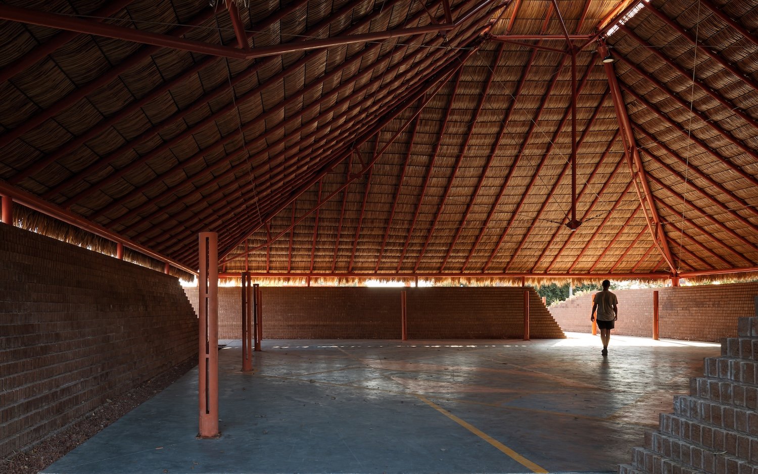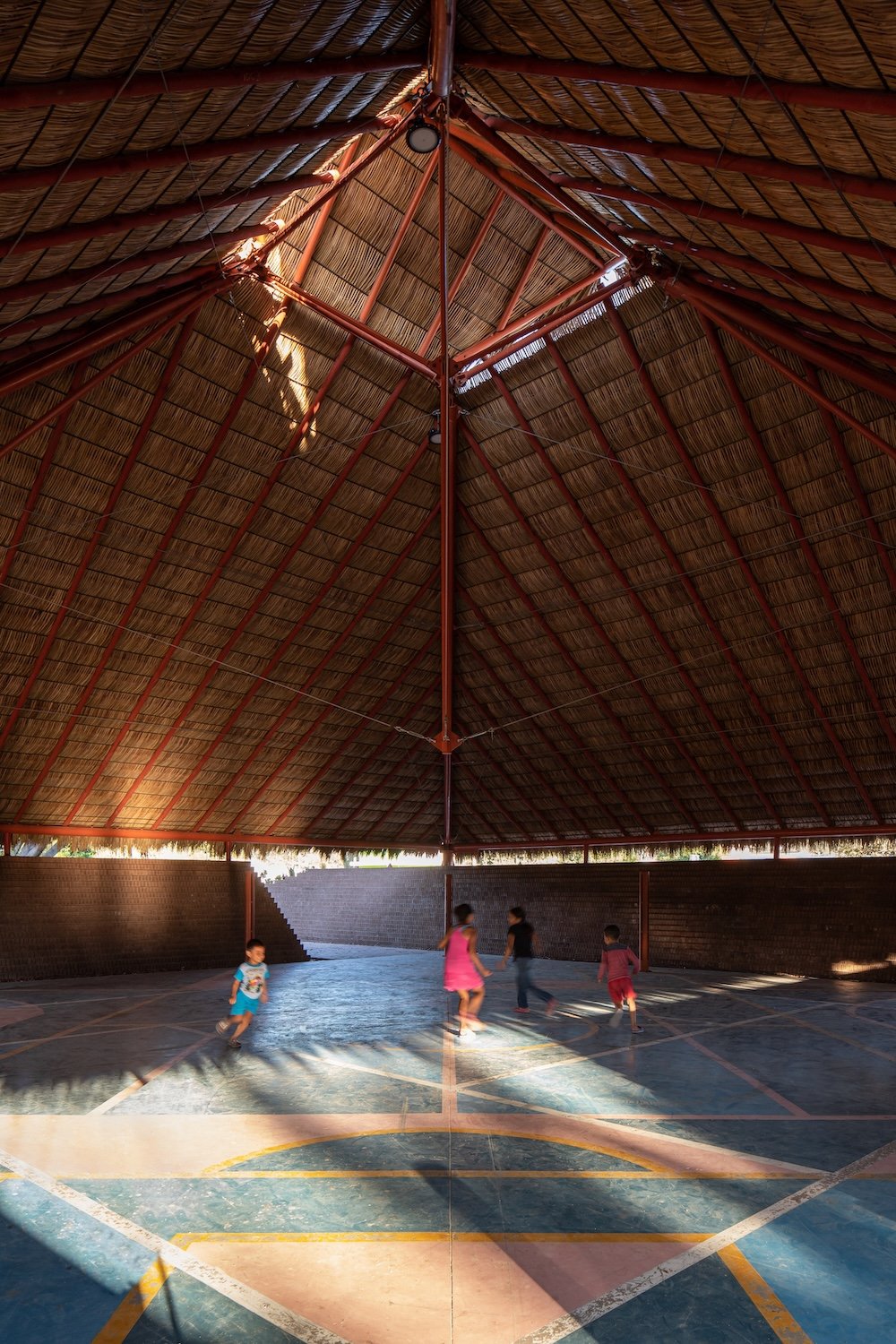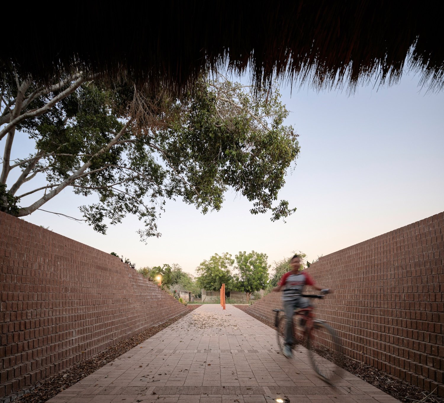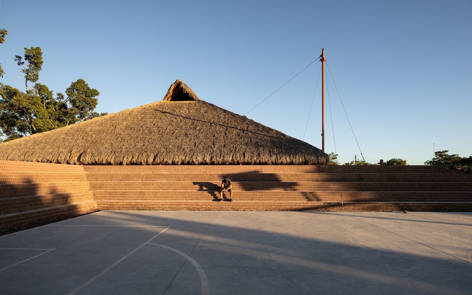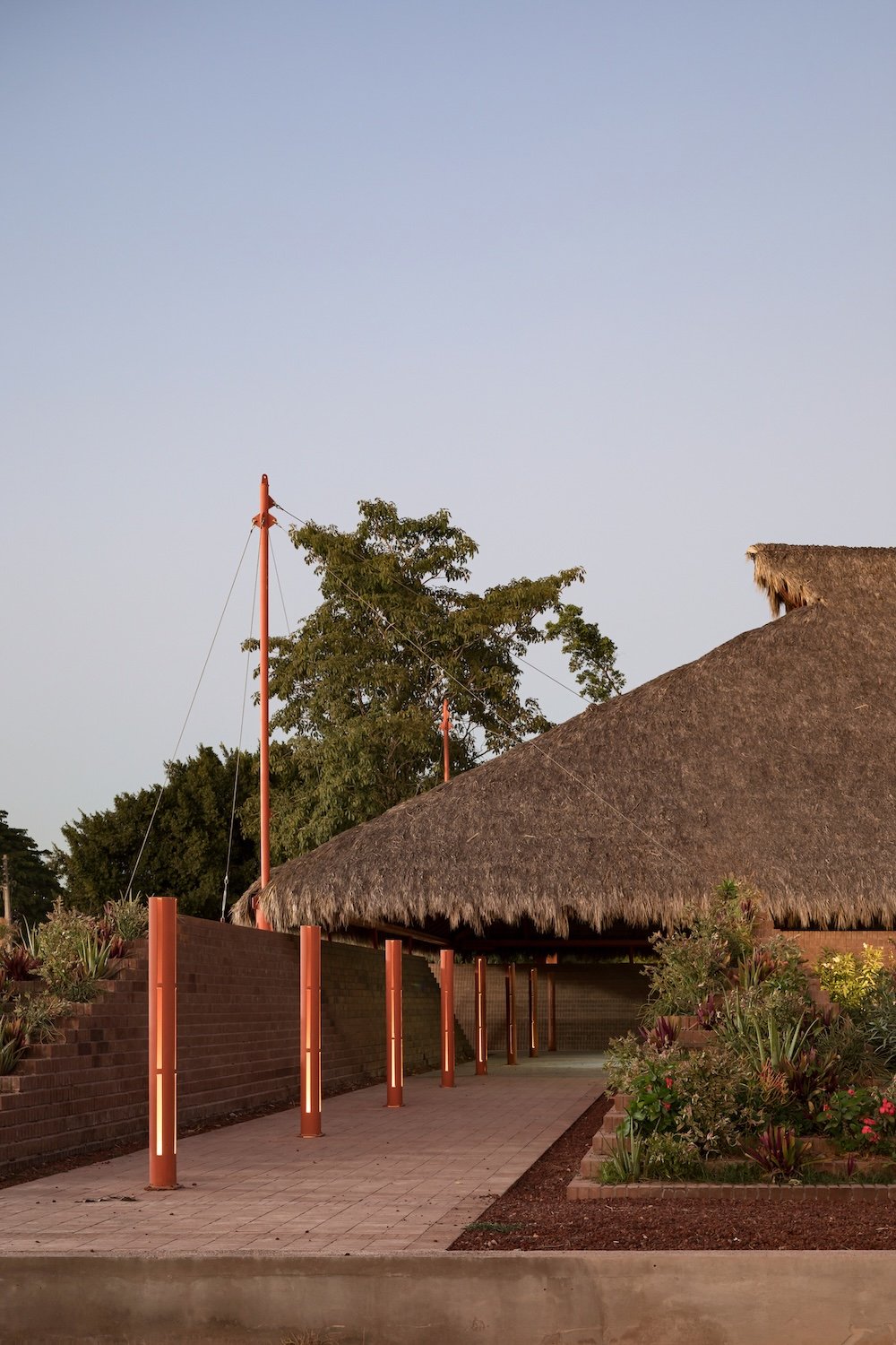 La comisión es una nueva plaza que debe integrarse con la iglesia. El objetivo del proyecto es articular el espacio abierto y la iglesia, reconociendo los diversos bordes que conforman el sitio (borde del poblado, andadores peatonales y vehiculares y la carretera) y conservando la vegetación existente. A través de un gesto diagonal, se hacen coincidir los ejes de ambos espacios y se crea la articulación entre ellos: Una pequeña plaza que formaliza el pavimento a los pies del acceso de la iglesia y que forma la primera de las múltiples plataformas que se elevan en la plaza para crear una topografía habitable. En el perímetro la topografía crea, naturalmente, un talud que define el espacio de los dos andadores perimetrales a la plaza. De este modo la iglesia se integra, en l amedida de lo posible a las dinámicas del poblado, se relaciona con el paisaje y se protege de la carretera, visual y acústicamente, con el espacio público de un foro ascendente.